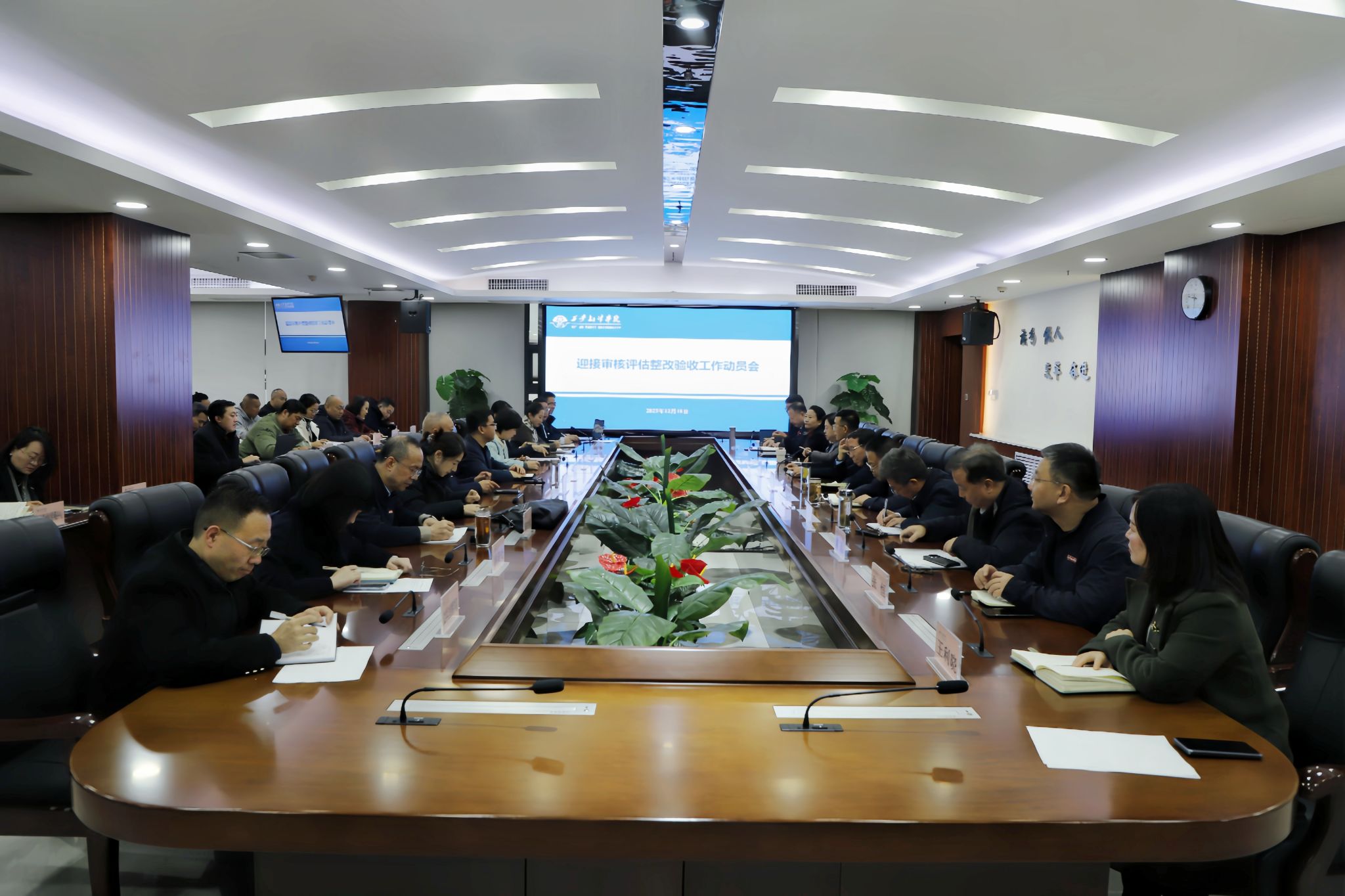 武忠远在主持会议时指出,本次会议既是一次动员会,更是一次部署会,全校要严格按照会议要求,抓重点、补短板,以高度的责任感确保审核评估整改验收工作圆满完成,推动学校办学质量持续提升。本次大会标志着学校迎评工作进入最后冲刺阶段,学校将以此次验收为契机,全面检验建设成果,深化内涵发展,奋力开创高质量发展新局面。